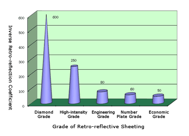 The application of engineering grade, high-intensity grade and diamond grade retro-reflective sheeting are described as follows: