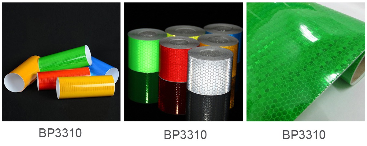 The BP3310 reflective sheeting is available in normal eight colors, with a choice of two substrates: PVC, flex. The PSA glue with white only. The standard available width sizes are 0.61m, 0.62m, 0.91m, 1.22m, 1.24m. It is easy to be cutting with computerized plotter and printing with digital printers. It is suitable for applying to the pre-cleaned steel, aluminum and plastic boards (Plastic Boards should be tested for suitability before use).