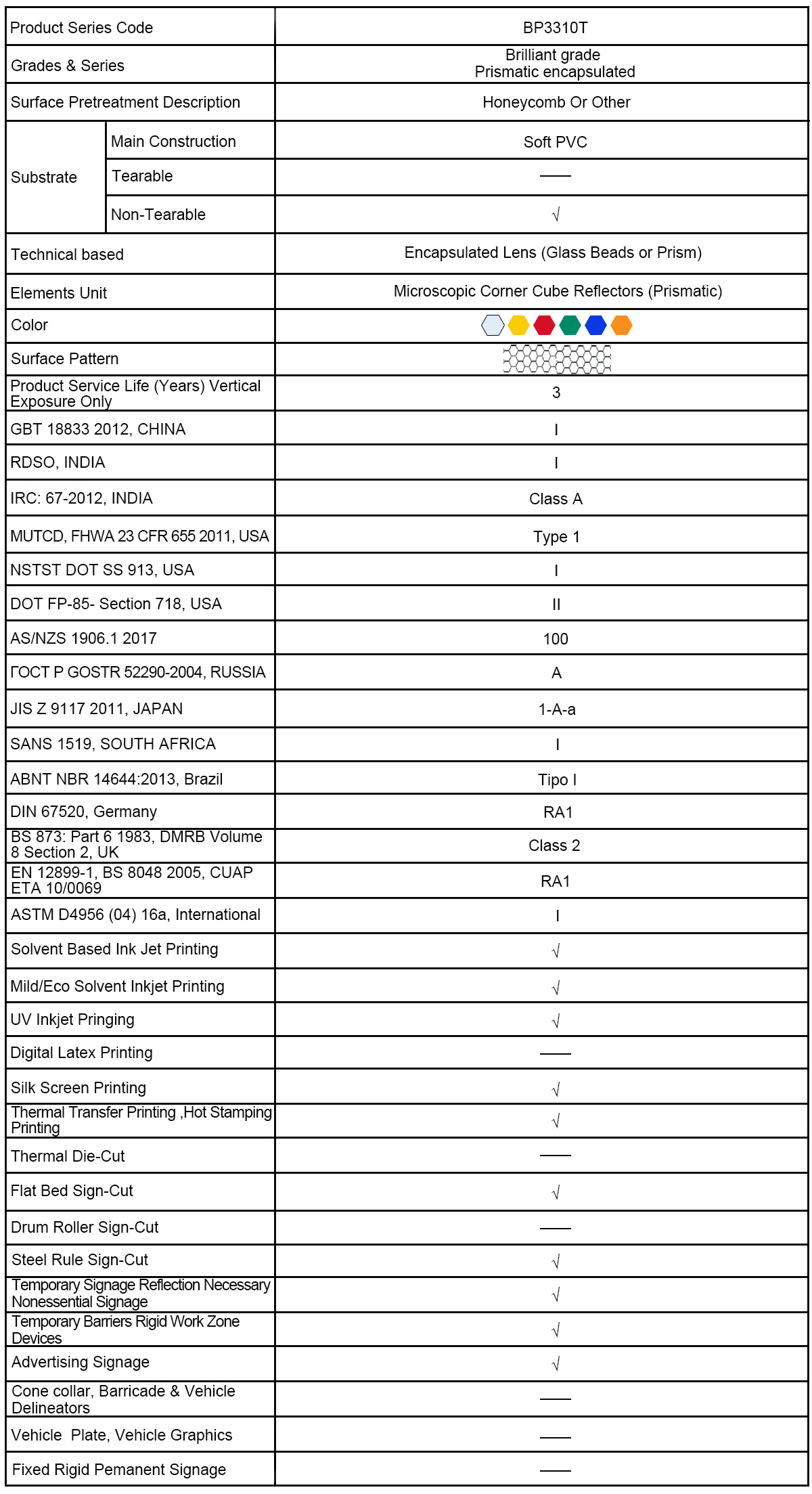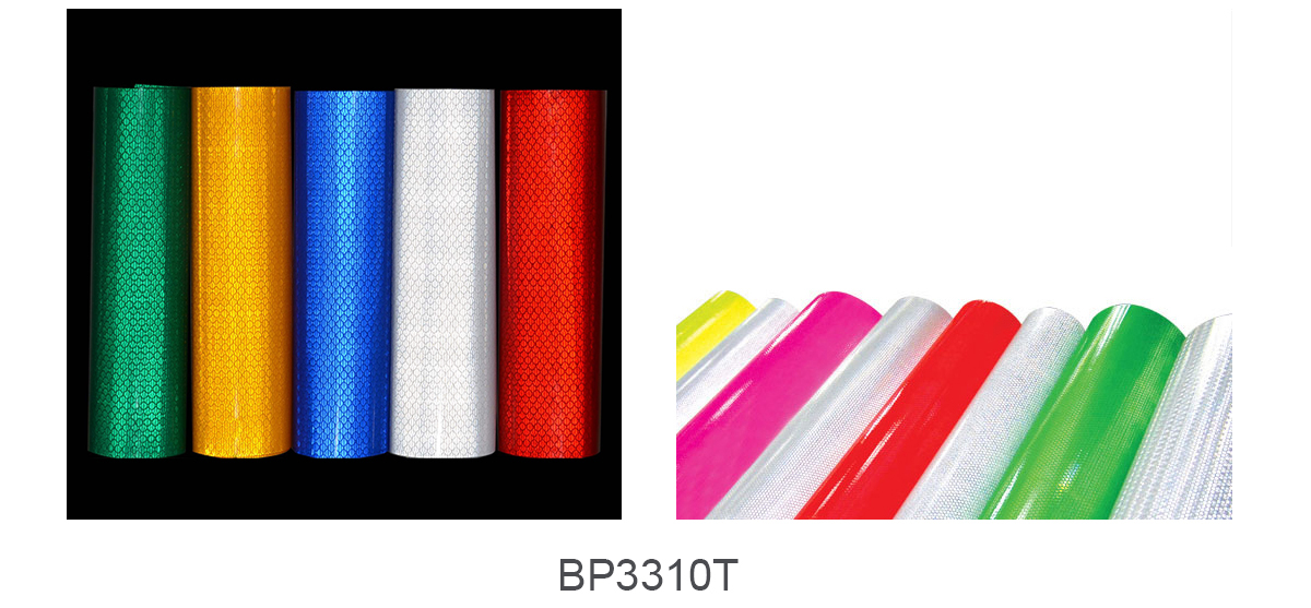 The BP3300T reflective banner sheeting is available in normal two colors, with the substrate of PVC. We have different width sizes available. It is easy to be cutting with computerized plotter and printing with digital printers. More details pls check the overview table or Spec sheet.