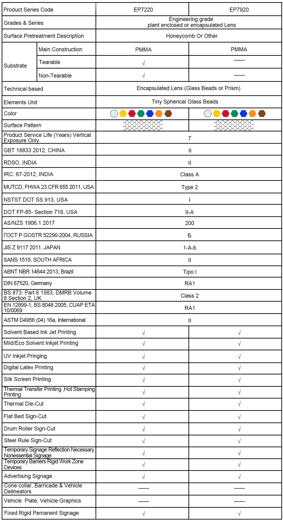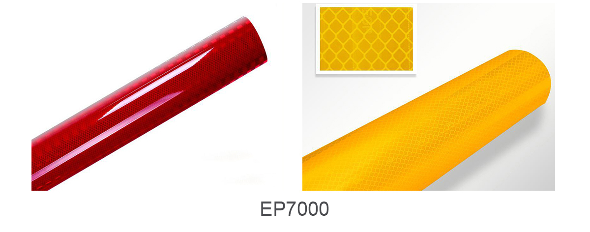 The EP7000 reflective sheeting is available in normal eight colors, with a PMMA substrates. The product is selfadhesive with PSA transparent and release liner. The standard available width sizes 0.61m, 0.62m, 1.22m, 1.24m. It is easy to be cutting with computerized plotter and printing with digital printers. It is suitable for applying to the precleaned steel, aluminum and plastic boards (Plastic Boards should be tested for suitability before use).