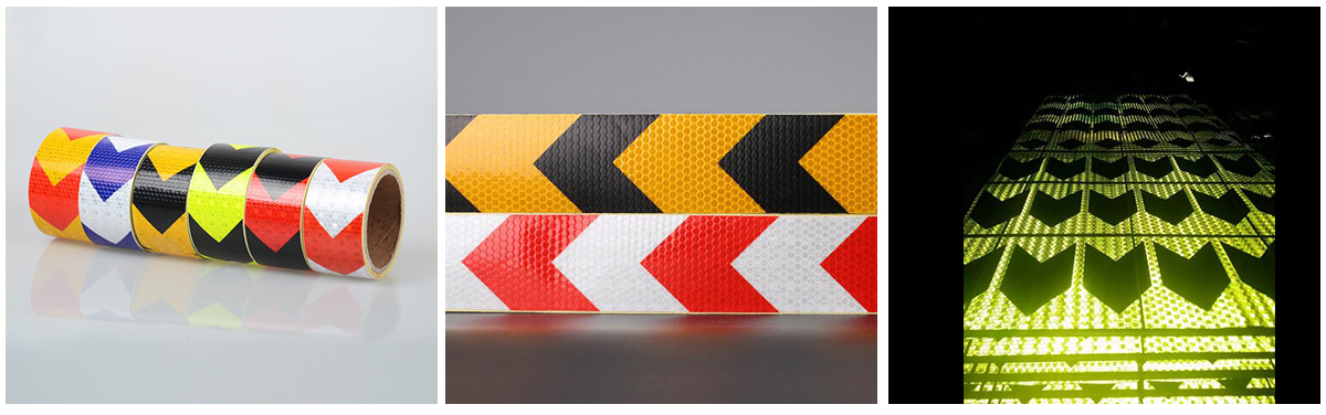 Aeon-LiteTM Hazard Obstacle Warning Series Arrows indicating decal tape type ABP3310 Series Reflective Sheeting could be different kinds of 3 years durable products with encapsulated high reflecting index microscopic corner cube reflectors in a double color pre-coating layer, while it performs very well to return the incident lights overall.