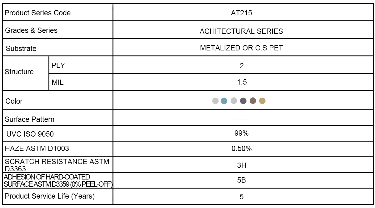 The AT series window film is available in many different colors: silver, blue, etc. We have different width sizes available: 1.52m*30m, 1.52m*60m, 1.52m*600m etc. It is easy to be cutting by knife and install to the windows. More details pls check the Spec sheet.