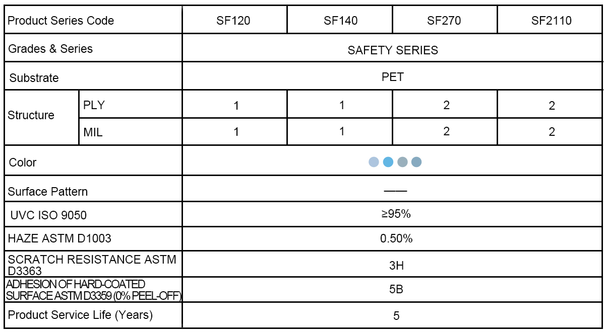 Aeon-CoolTM SF Series Safety Window film is a kind of 5 years or longer film which is constructed by using vacuum evaporation technology metals onto sheets of polyester. We can make final products to be 2 ply structures products to achieve customers’ residential use requirements. With different color films, optical densities, and thickness choices, intended for home and houses’ windows.