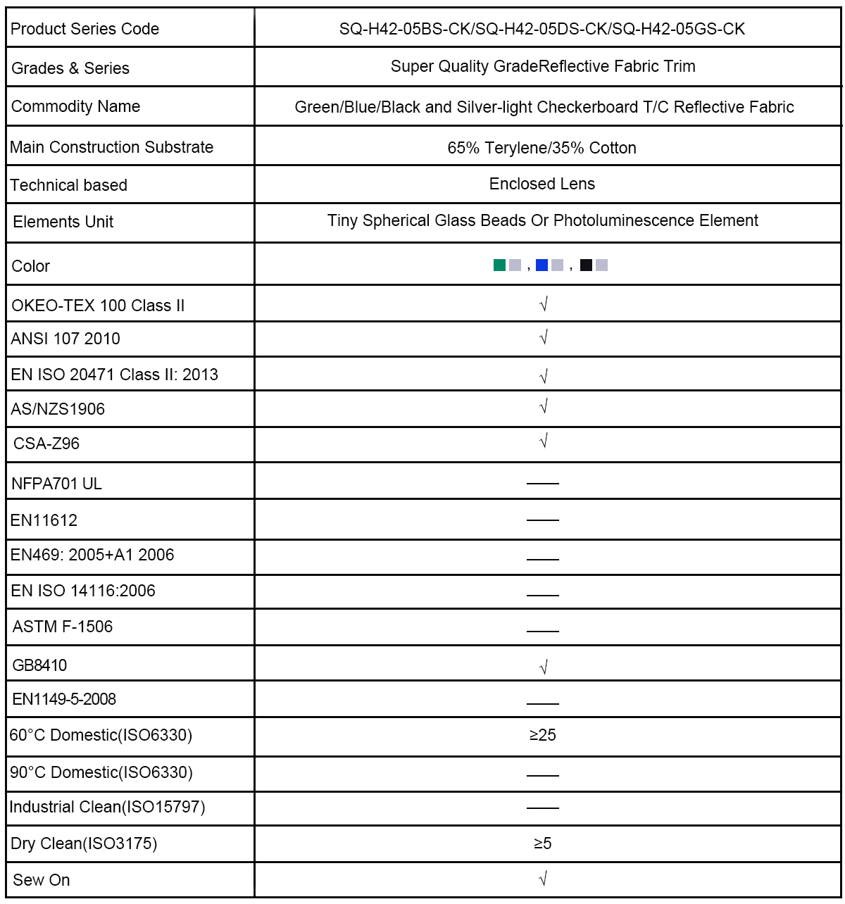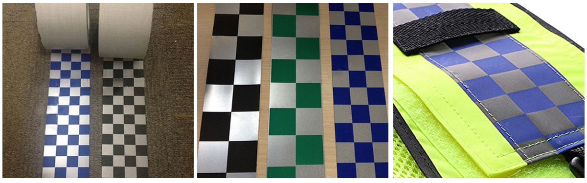 With double colors checkers printed The Super Quality grade SQ-H-05XX-CK series reflective warning tape which has a T/C backing and comes in rolls of 200 meters or 100 meters at a standard 50.8 mm width, other widths are available upon request, in a variety of fabrics can be sewn with padding or sewn on to fabrics, such as knit t-shirts, sweatshirts, outerwear for home wash applications. We supply the best qualified reflective fabric consistent performance at a competitive price as always.