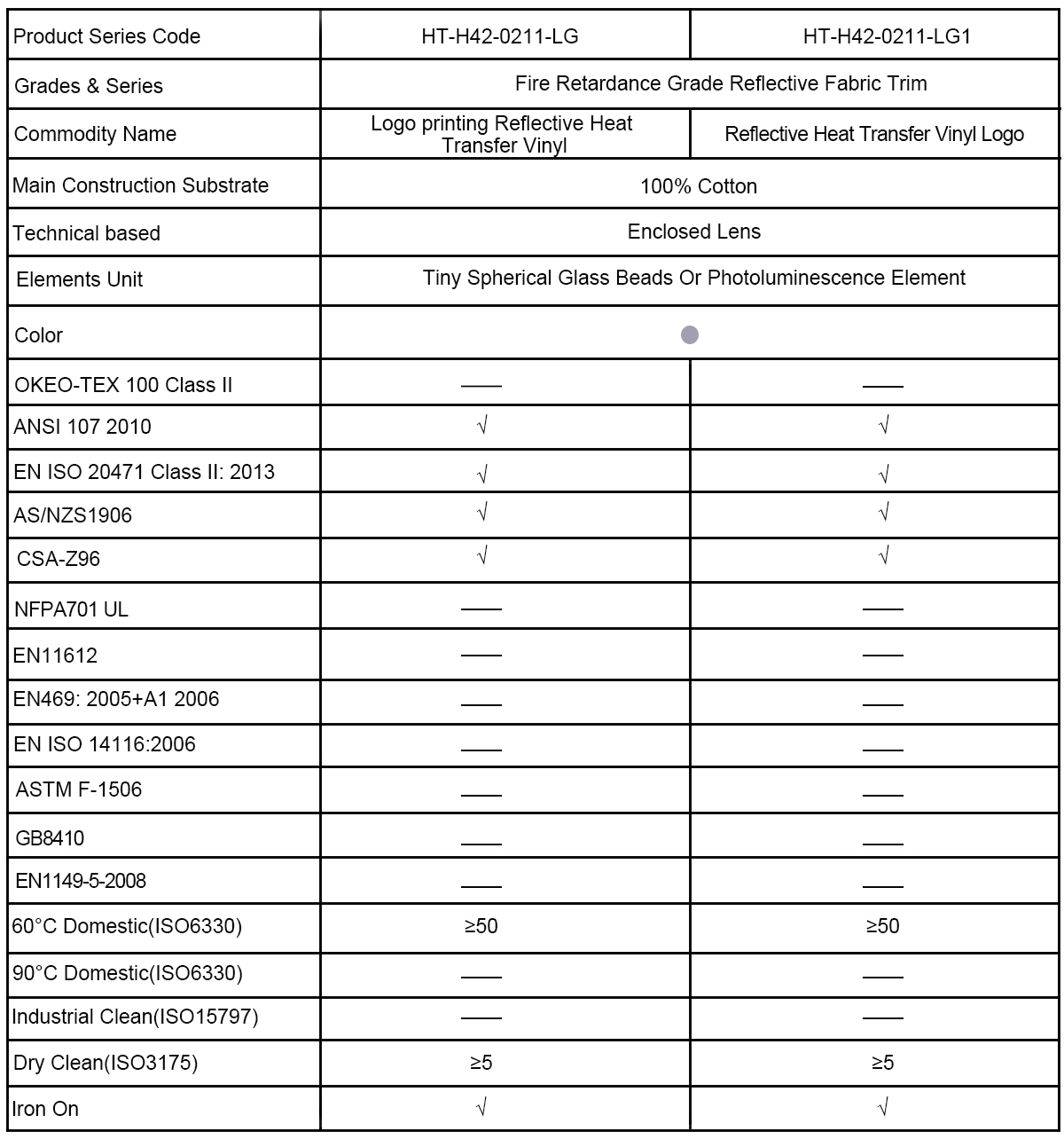 The heat transfer grade HT-H42-0211-LG series reflective heat transfer vinyl LOGO has a hot melt adhesive PES substrate and PET carrier film and comes in rolls of 200 meters or 100 meters at a standard 50.8 mm width, other widths are available upon request, in a variety of fabrics can be attached or sewn with padding or sewn on to fabrics, such as knit t-shirts, sweatshirts, outerwear for home wash applications. It is suitable for using a computer or laser to carve a variety of fonts or patterns, and then heat them on all kinds of substrate. We supply the best qualified reflective heat transfer vinyl consistent performance at a competitive price as always.