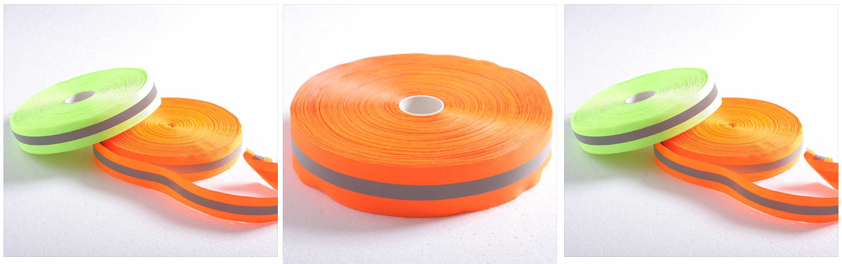 The reflective ribbon grade RB-1210-RH series reflective ribbon trim has a webbing backing and comes in rolls of 200 meters or 100 meters at a standard 50.8 mm width, other widths are available upon request, in a variety of fabrics can be sewn with padding or sewn on to fabrics, such as knit t-shirts, sweatshirts, outerwear for home wash applications. We supply the best qualified reflective ribbon consistent performance at a competitive price as always.