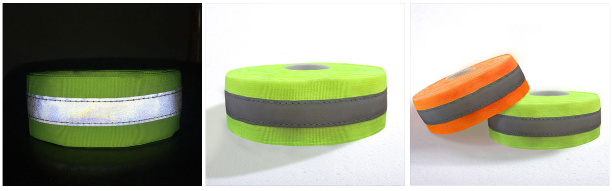 The reflective ribbon grade RB-1210-RF series reflective ribbon trim has a webbing backing and comes in rolls of 200 meters or 100 meters at a standard 50.8 mm width, other widths are available upon request, in a variety of fabrics can be sewn with padding or sewn on to fabrics, such as knit t-shirts, sweatshirts, outerwear for home wash applications. We supply the best qualified reflective ribbon consistent performance at a competitive price as always.
