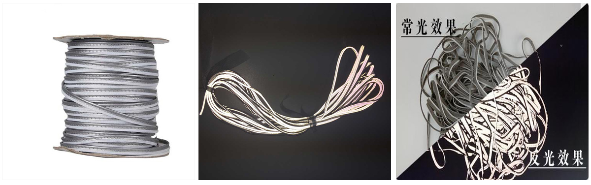 Aeon-VizTM Reflective Piping Grade RP-L10(H33, H42)-0310(11) series Embedded semi-enclosed glass beads type polyester reflective piping or edging designed for enhancing visibility in low light and nighttime conditions, it is a highly reflective product and can match with different base materials. Extremely bright and durable, it is easily incorporated into a design and creates a point of difference. It is washable and gives a retro-reflective effect, to improve the wearer is available at night or in adverse environments sight visibility plays a significant role.