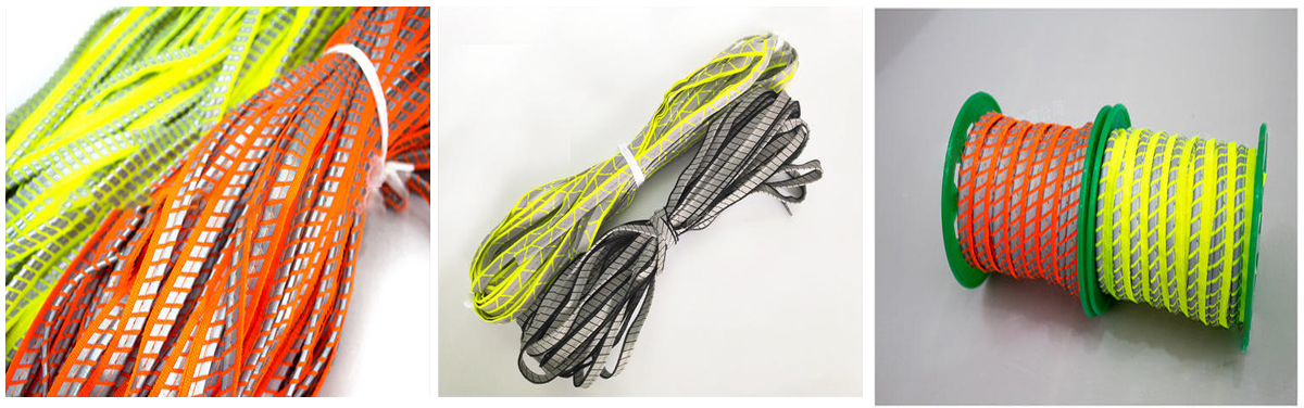 The reflective ribbon grade RP-CH-0300-SG, RP-CH-0500-SG series segmented reflective piping or edging has a poly or T/C fabric backing and comes in rolls of 200 meters or 100 meters at a standard 1.3cm*1.7cm width, other widths are available upon request, in a variety of fabrics can be sewn with padding or sewn on to fabrics, extensively used in safety apparels, shoes, bags and gloves and others, these are available in a wide variety of specifications as per the exact requirements of clients. Moreover, these are quality checked on various stringent parameters to ensure their durability and quality. We supply the best qualified reflective piping consistent performance at a competitive price as always.