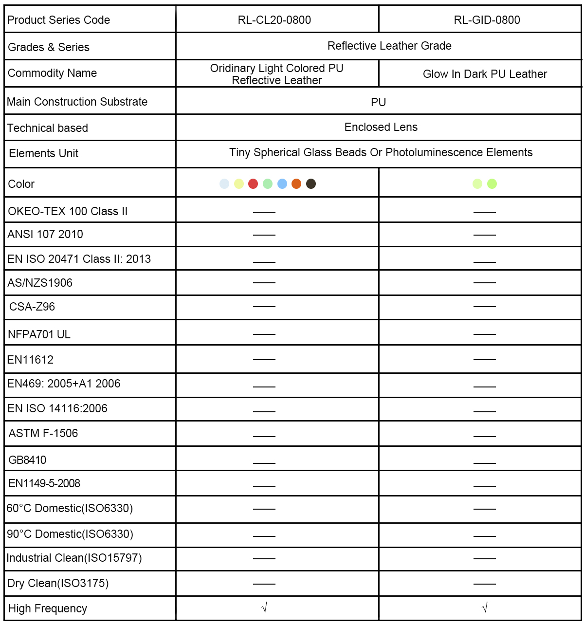The reflective leather grade RL-0800 series reflective fabric has a PU backing and comes in rolls of 200 meters or 100 meters at a standard 50.8 mm width, other widths are available upon request, in a variety of fabrics can be sewn with padding or sewn on to fabrics, such as knit t-shirts, sweatshirts, outerwear for home wash applications. We supply the best qualified reflective fabric consistent performance at a competitive price as always.