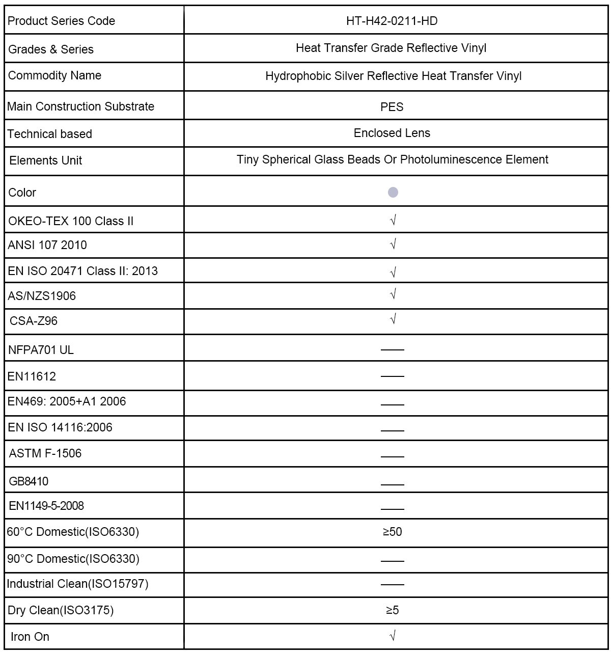 HT-H42-0211-FR Fire Retardance Reflective Heat Transfer Vinyl